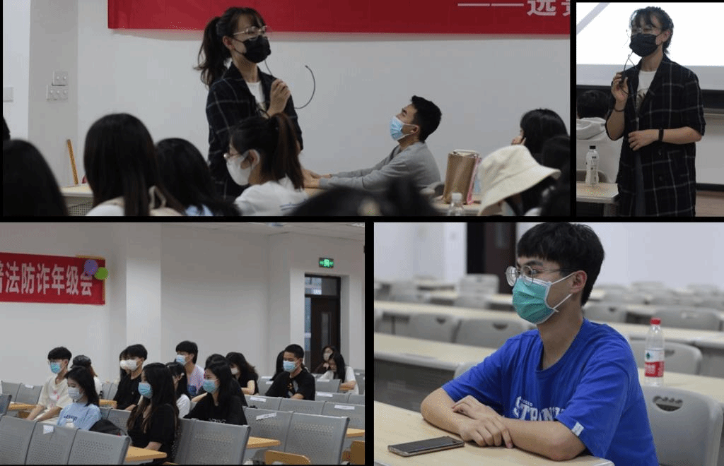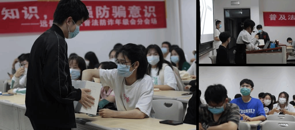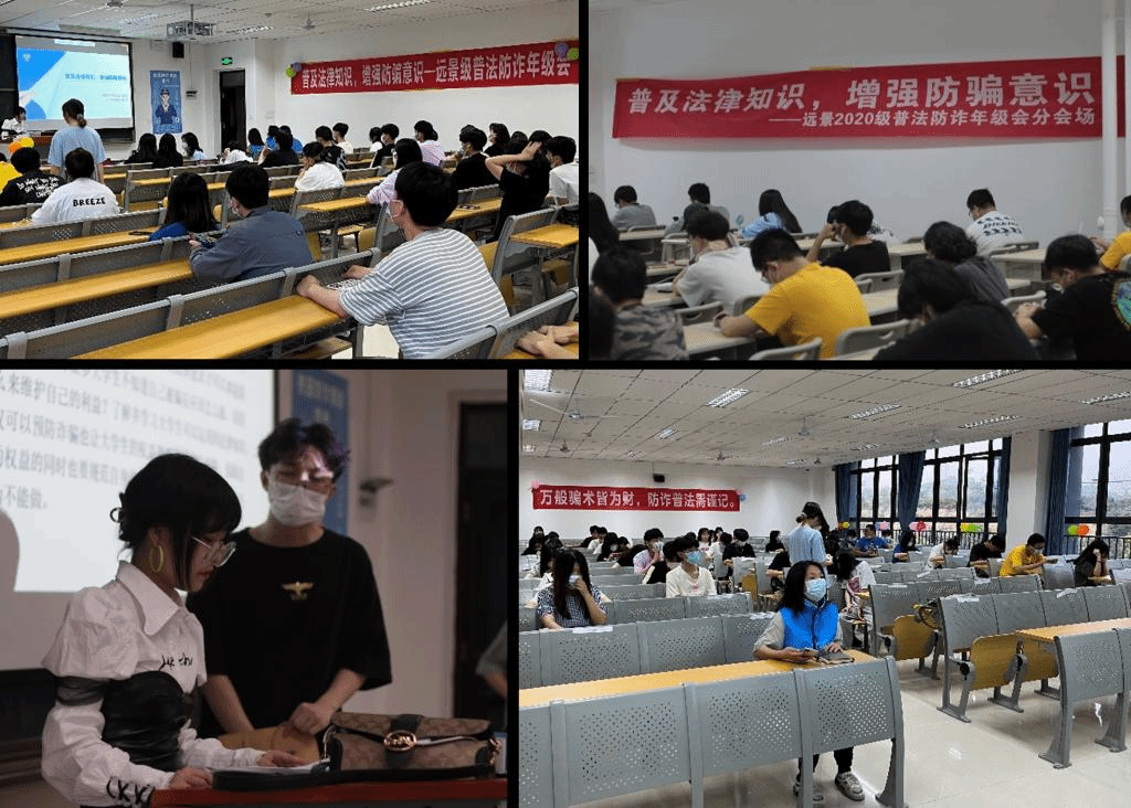 被诈骗的背后,说明学生法律知识匮乏、法律意识淡薄,一方面没有意识到网络刷单、借证代办手机卡、帮助回收银行卡、外借银行卡等是属于违法违规行为;另一方面,对诈骗分子的违法行为缺乏辨识和认知的能力。为提高大学生的法律及网络安全意识,普及法律基本知识,远景学院2020级“讲法律、防诈骗”主题年级会,于2022年4月23日晚七点在9110、9104、9105召开,根据疫情防控要求,本次年级会设置一个主会场,两个分会场,远景学院2020级全体同学及辅导员付海明老师参加本次年级会,邓宇洁担任会议主持人。