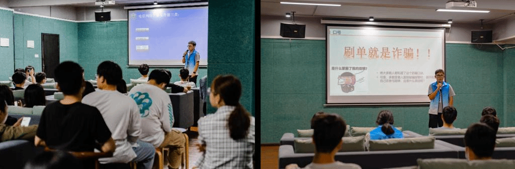 主持人为同学们简单讲解当前网络诈骗的背景后,猫头鹰防诈骗志愿服务支队宣讲团代表入场,通过一些数据支撑和身边的真实事件来讲解电信网络诈骗的特点和常见手段。与此同时,强调手机装载“国家反诈中心”APP的重要性,并讲述该软件的各项功能。此次宣讲进一步加深了同学们对防诈骗的思想和意识。