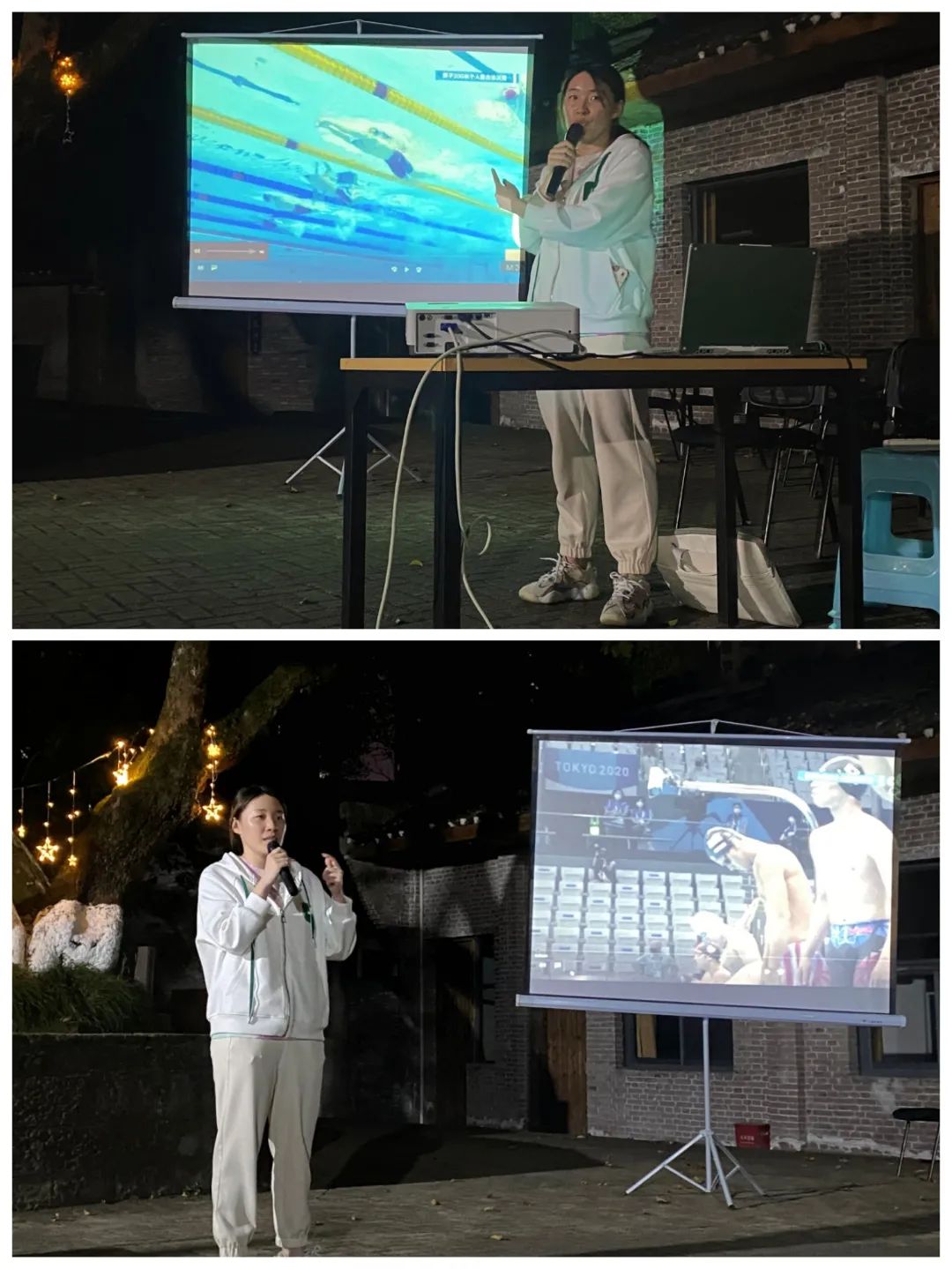 灯光点缀夜色,王钰涵老师分享的游泳知识深入人心,李泳教练讲解有关铁三运动的内容耐人寻味。春天有许多事要去做,别烂在想象与梦里,都往春天去。