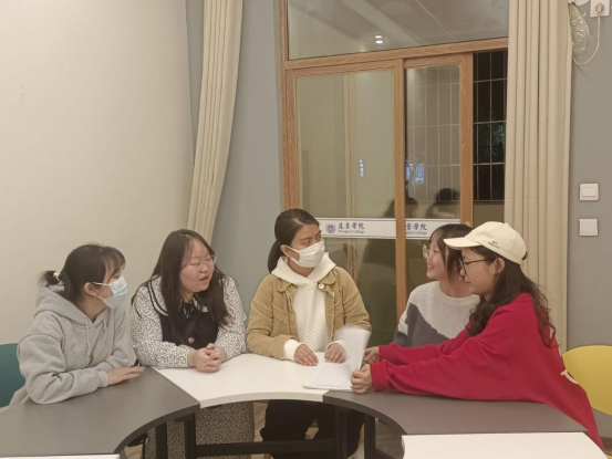 2021级导师组学生是由英语、自动化类、机械类三个不同专业学生组成的6人学习小组。唐老师一开始就带来了慕斯蛋糕和同学们一起分享,为此次分享会营造了温馨的氛围。这不像是一次会议,更像是一次下午茶,唐老师像是年长一些的老友,询问着同学们的近况,而同学们也吃着蛋糕相互分享寒假的生活。有的同学热爱ps设计,自己在接单进行实践;有的同学写着策划忙着打比赛;还有的同学热爱日语,为考研做着规划,每个同学都分享了自己的兴趣和寒假的生活。