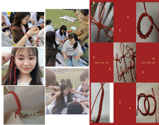 活动伊始,同学领取到一条颜色鲜红的红绳,远远望去好似看见来红军将士们为了我们的新中国成立在抛头颅、洒热血,一条细小的红绳却散发着不可诉说的魔力,默默的激发着每一位同学的赤子之心,一条红绳慢慢的在同学们手中逐渐变成一个个中国结,同学编织的中国结是如意结寓意着称心如意、万事如意,大大小小的中国结在一起仿佛一条红色的长廊,在同学们手中熠熠发光。
