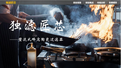 远景学院就创助理团秉持创新理念以及强烈的公民社会责任感,针对目前餐饮行业油烟排放污染严重的问题,利用康宁陶瓷材料设计了一款新壁流式蜂窝陶瓷过滤器,以壁流式蜂窝陶瓷过滤技术为核心,在大颗粒拦截的基础上,经过200~300℃的加热网与催化剂的共同作用,将油烟微粒分解为无害的水蒸气和二氧化碳,以实现循环过滤自清洁的功能。不仅能够改善外界环境的空气质量,同时也能为餐饮行业降低设备维护费用,人工成本大大降低。经过激烈的比拼与严格的考评,我院“独滤匠芯”项目凭借颠覆性的创意产品、精确化的商业模式、可持续的运营体系,成功进入全国三强,终获全国亚军!