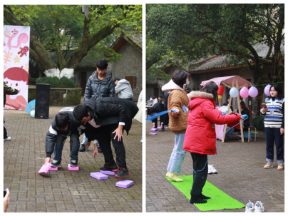 12月8日,15:00,菩提书院广场里热闹非凡,学子如织。学工副院长李院长带来了激情的发言,拉开了游园会的序幕。Rap社的激情rap作为开场表演点燃师生们参与活动的热情。在菩提书院广场的中央,师生们进行着鱿鱼游戏、打地鼠和接力袋鼠跳等开场游戏,整个菩提院子回荡着欢声笑语。师生共同体是成立远景学院的初衷之一,在这次活动中通过面对面的交流更好的打破了学生与导师之间的隔阂,促进彼此间相互了解、共同成长。