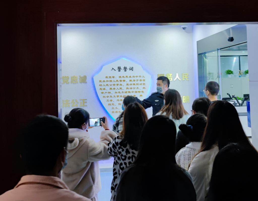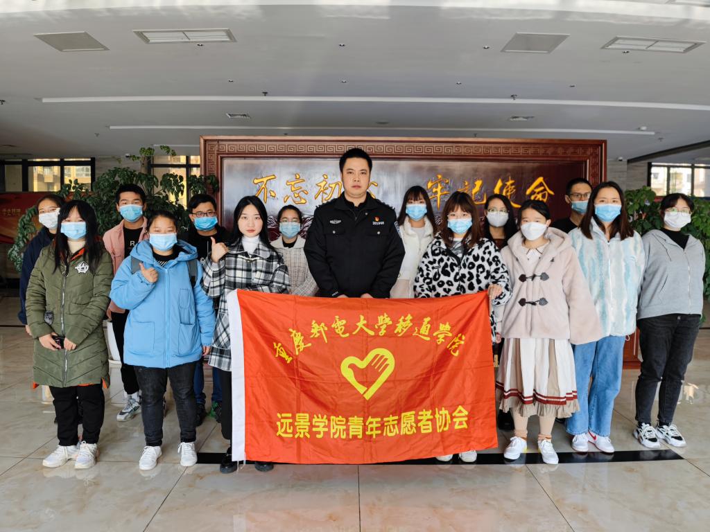2021年11月15日下午,移通学院远景学院志愿板块指导老师杨斌誉带领远景学院防诈骗专项支队成员和来自其他各个学院的共16名同学走进合川反诈骗中心参观学习。