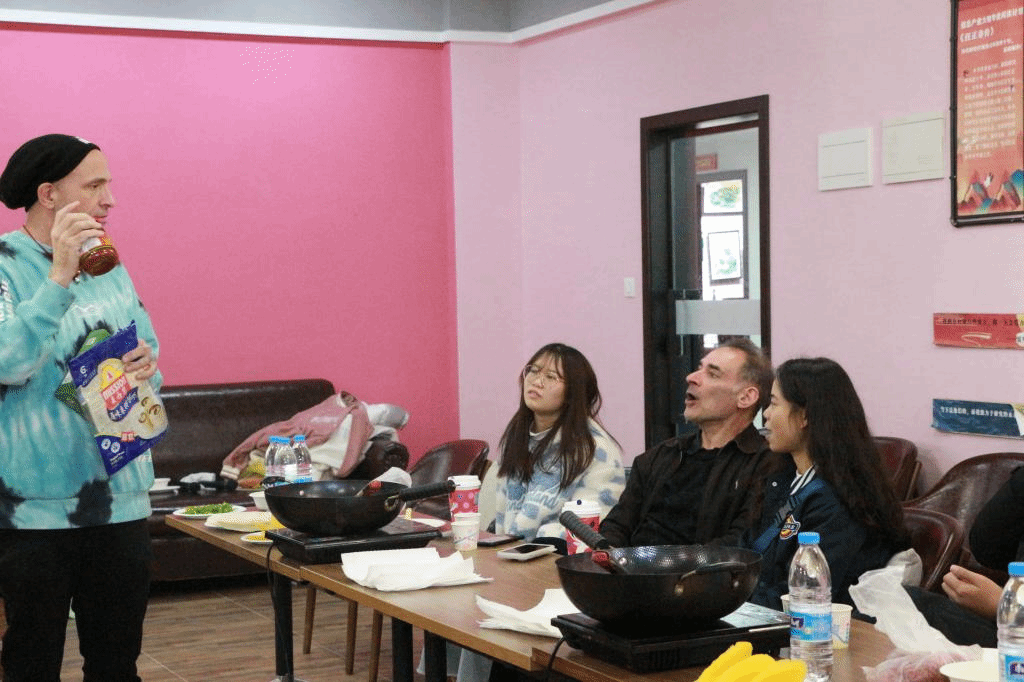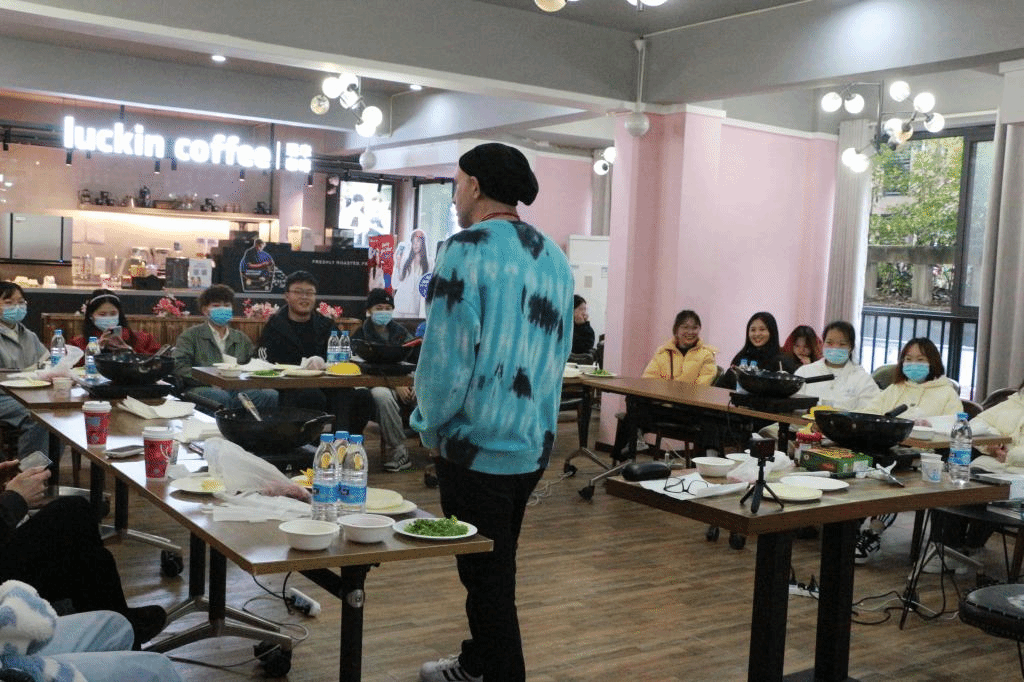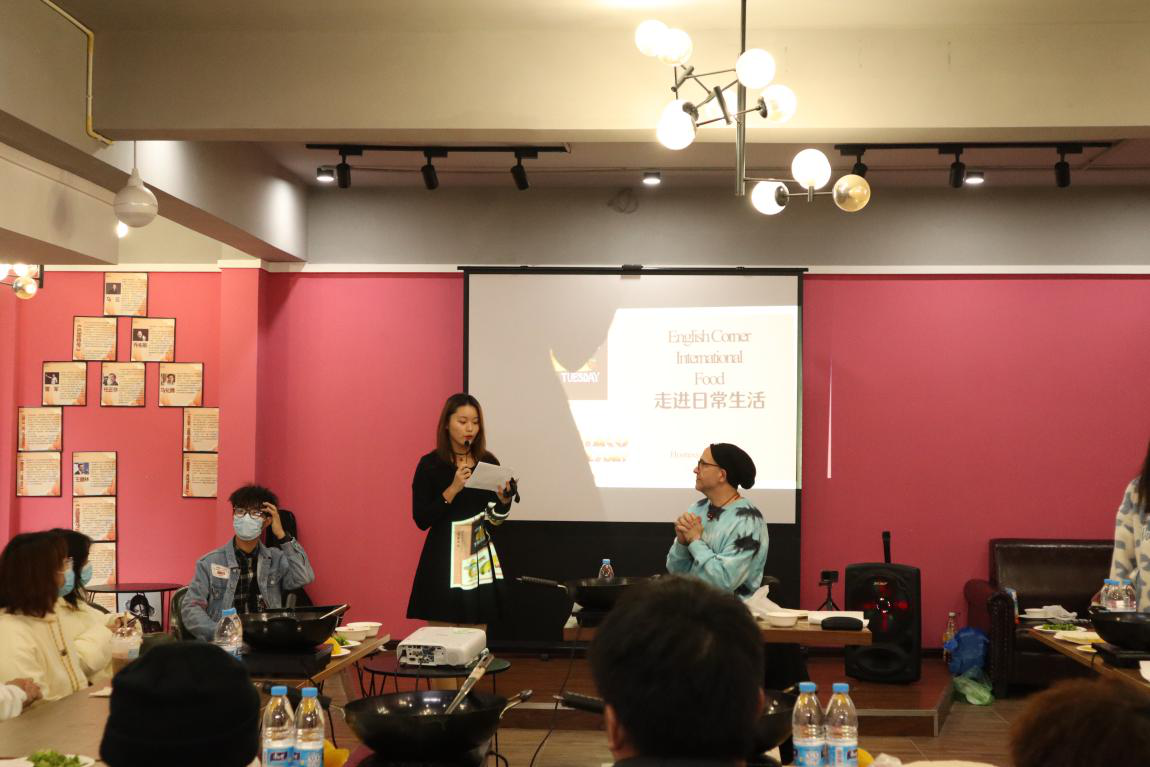 此次英语角活动邀请到了外教老师Peter、Clive老师、社团指导老师唐智盟一同参加,peter老师用美式英语介绍自己家乡的传统美食并与同学们进行交流互动。老师诙谐幽默的风格也让同学们对本次“Life of foodie”英语角活动表现出了浓厚的期待和兴趣,