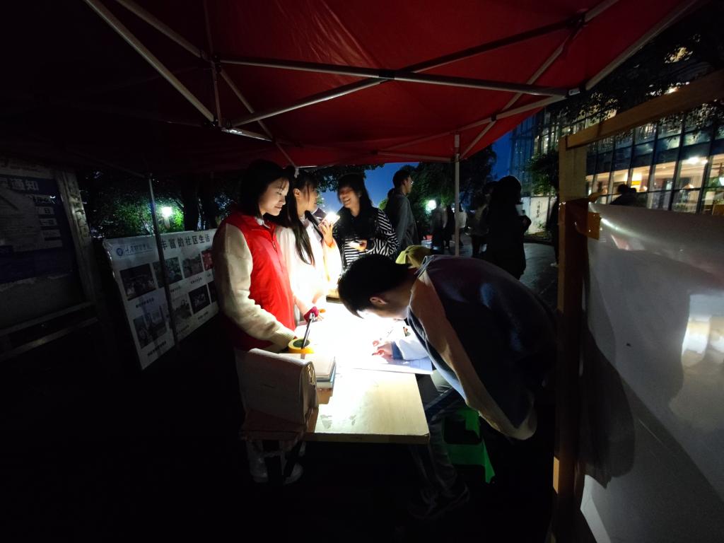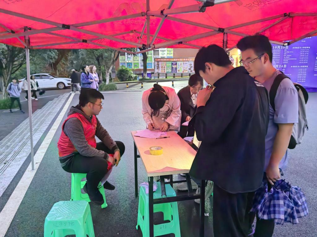 志愿者们选择了图书馆前、天梯口、AB食堂门前三个平时人流量较大的地点作为线下问卷发放点。有了服务阵地,志愿者们的服务热情更加高涨。虽然天气微凉,天空也飘着小雨,但志愿者们的热情丝毫没有受到影响。积极向同学宣传防诈骗志愿服务活动、积极向同学们投出手中的问卷。线上同学们积极健康调研问卷链接发送至班群,邀请班级同学填写。一位志愿者说,他今天的的目标就是要把所有的的问卷全都发放出去,收集同学们的反诈防骗意识的基本情况,让后期防诈骗志愿服务支队建立在牢固的基础之上。