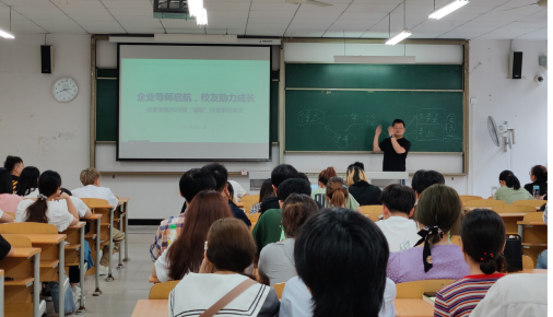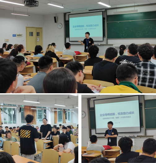 启航学长讲述自己故事的同时,逐步引导同学们明晰自己的职业目标、工作地、工作方向、发展前景等;同时通过目前互联网发展势态引导同学们在这个不确定、充满变化和机遇的时代学会看清形势、看准时机、找到风口进入到行业内实现自己的理想和价值;最后激励各位同学要用发展的眼光、创业思维打造自己的职业生涯,努力在一个行业里做到深入,成就自己的人生事业。