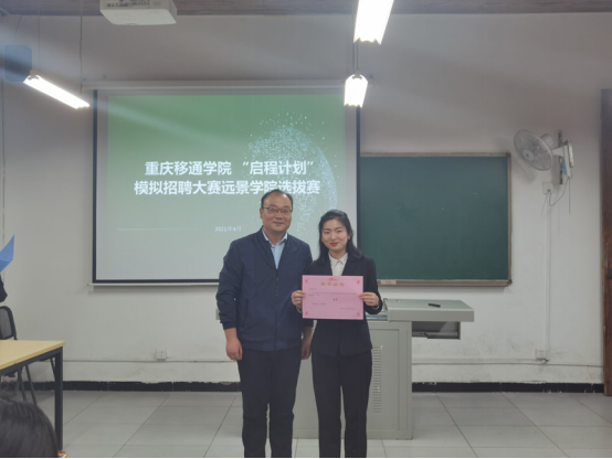 为进一步培养学生求职技巧,提高学生就业能力,远景学院于2021年4月27日举办重庆移通学院第九届模拟求职招聘大赛远景学院选拔赛,活动在菩提书院教室五进行,由远景学院就创助理团承办。远景学院自然科学基础教研室主任强杨,学工办公室主任郭淼,辅导员付海明、杨斌誉,综合办公室程艳老师担任评委。