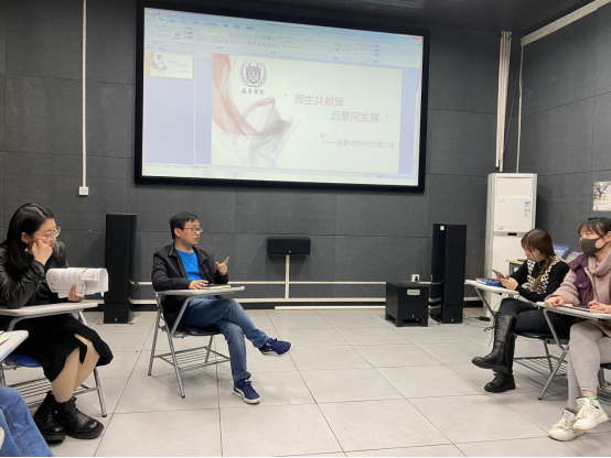 2021年4月20日下午四点,远景学院4月完满沙龙在菩提电影室举行,远景学院学工副院长李军、郭淼、付海明等各板块指导老师及2020级各支部学生代表共同参与,沙龙就学院学生参与完满教育的情况展开深入交流。