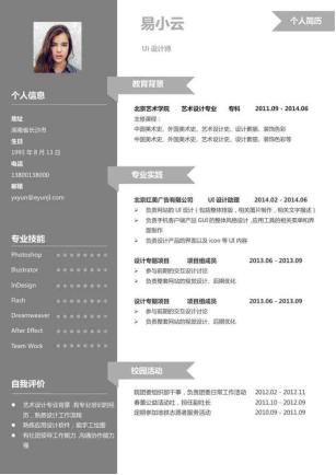 那么像下图这样左右分栏、上下平行的简历,是目前比较常见的排版模式。这样的排版不仅可以清晰明了、错落有致而且符合大多数人的阅读习惯。