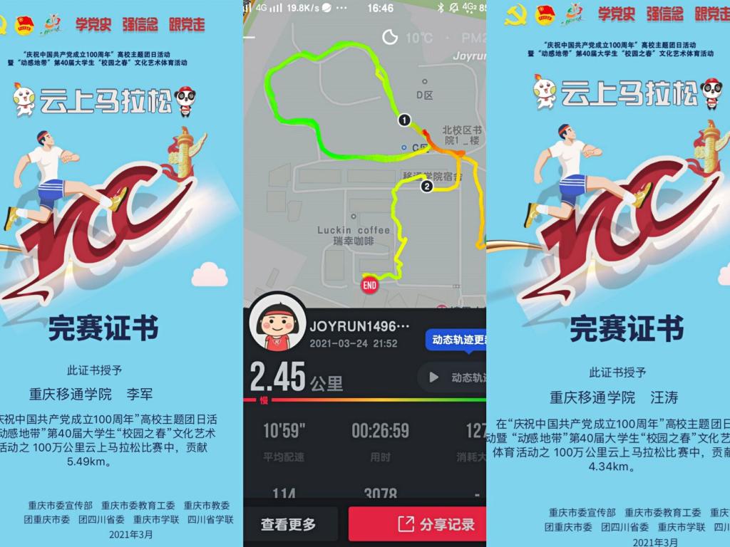 冬色渐远,春意盎然。为提升大学生身体素质,重庆移通学院学子积极参与“重庆第40届校园之春云上马拉松活动”之际,远景学院的月光下系列活动(简称月光晚跑)也恰逢其时,为了更好增强远景学院月光晚跑活动的多元素融合,学院开启了重庆第40届校园之春云上马拉松暨第72期远景学院月光晚跑活动。本次活动从3月24日持续到3月26日三天,旨在希望同学们能够通过晚间跑步的过程中,不断磨砺意志也加强自己的身体素养。