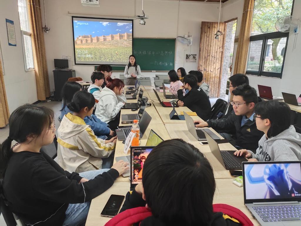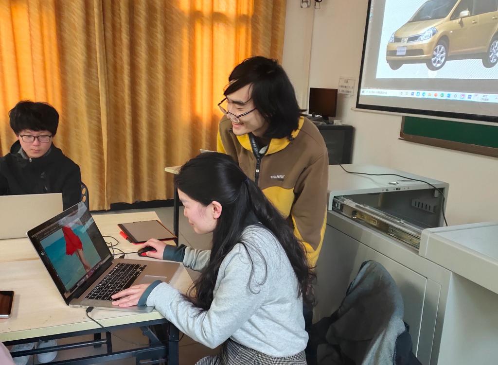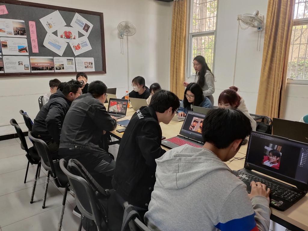 在详细的演示了操作方法之后,赵丹老师让同学们自己动手上图操作。在练习时间里,同学们互相讨论工具的选择和操作步骤,并且赵丹老师给在实践中遇到问题的同学作了进一步耐心的讲解,课堂氛围十分融洽舒适。