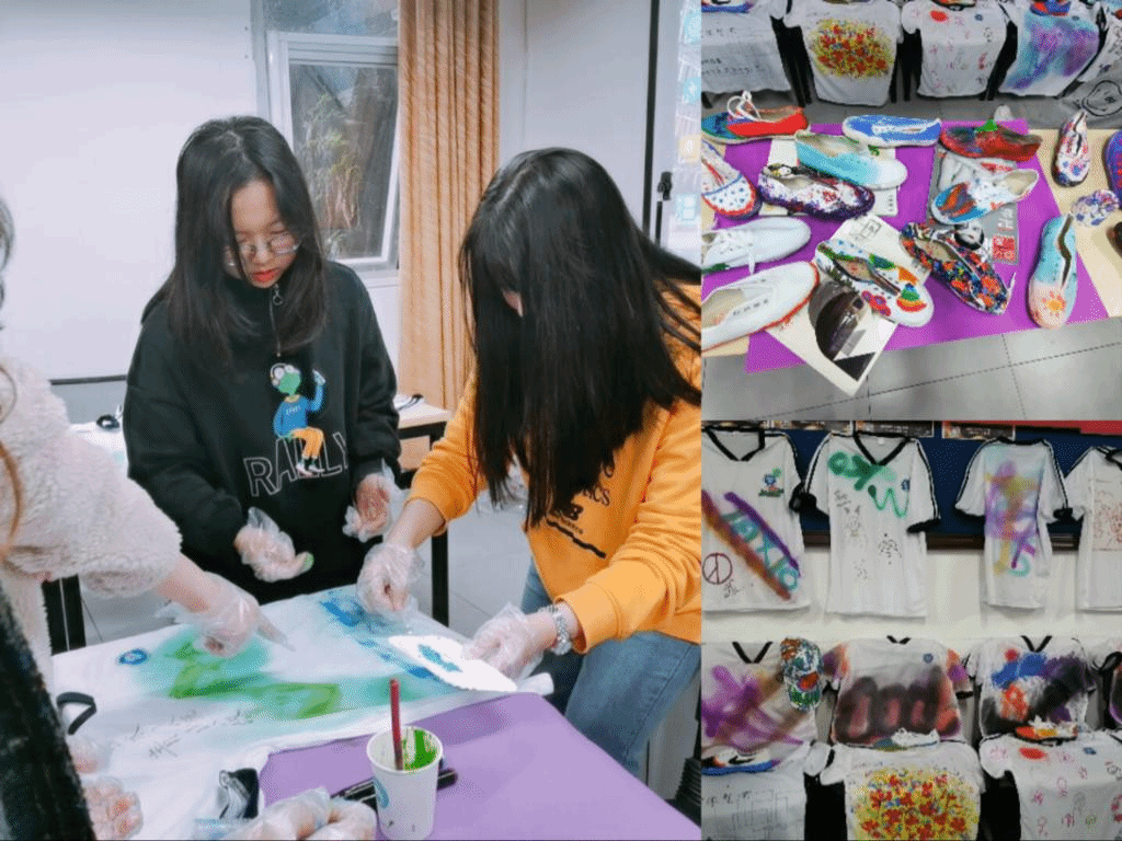 在“环保艺术加工站”里,同学们纷纷捐献出自己的废弃衣服、彩妆、首饰等材料,以春季万物复苏“更换新衣”的方式传递着我们的每一份绿色故事。