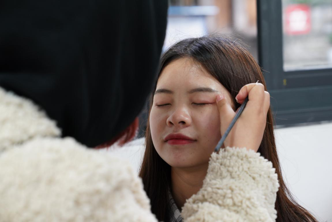 活动在“艺术”碰撞“绿色”的秉承原则中启动了。彩妆造型组对模特进行个性化造型设计,将立体绘画融入在仿妆中,这一切不仅实现了同学们自己的灵感和创意,也突出了对艺术的独到见解。参与者们尝试仿化“蒙娜丽莎”、“林黛玉”等经典妆容的过程中,却意外创造出“杨贵妃精致妆容”,让活动变得更加妙趣横生。