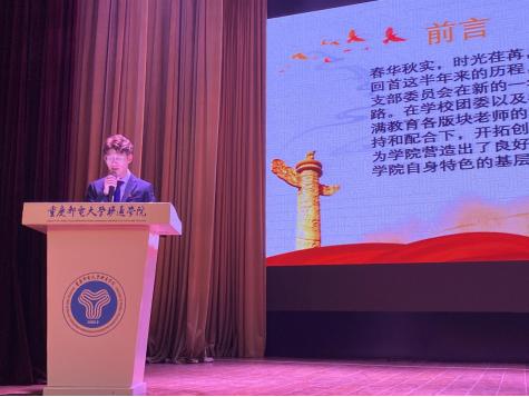 其后,远景学院团总支学生书记向涛进行了述职。他从工作开展与成果展示、工作不足与改进方法、未来方向与创新举措等三个方面总结了远景学院2020年上半学期学生会的工作成效与欠缺。向涛认为,应在立足我院自身特色的基础上,加大我院团总支的改革创新力度,以服务同学为宗旨,积极努力完成各项工作任务。