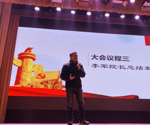 大会临近尾声,远景学院学工副院长李军上台总结致辞。他认为,作为远景学院的学生,应秉承着“在其位谋其职,不在其位观其职”的理念,多方面吸纳学生会工作经验,才有可能在机会来临时抓住机会。并鼓励各部门之间或各部门与社会之间进行合作,走出校园,走向社会。