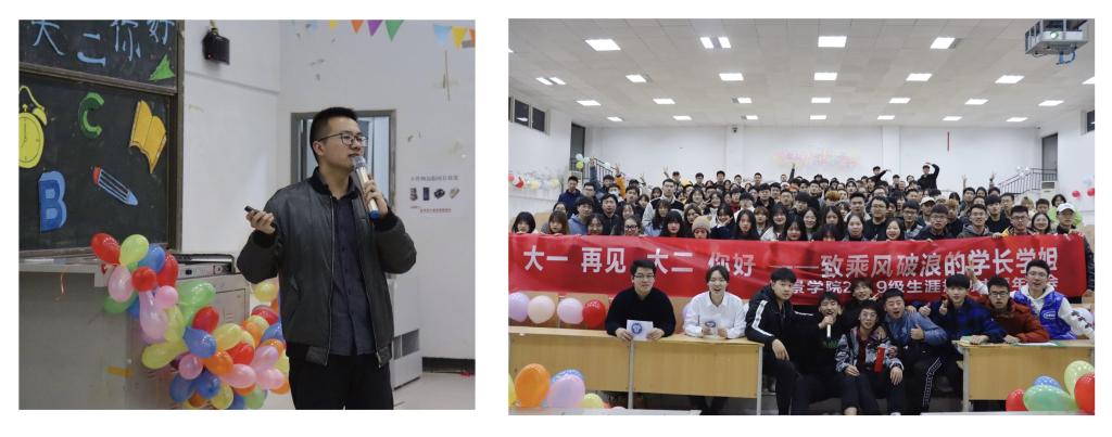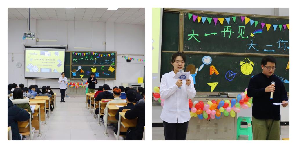 年级会接近尾声,辅导员作总结分享。他首先反问同学们,两个月了,你是一名合格、甚至优秀的学长学姐吗?如果新生问你:请问大一该注意什么,你能给出相关建议吗?据此,请大家细细反思这一年都干了什么?取得什么成绩?有什么不足与感悟?其次,他详细分析前期关于“毕业后打算”和“大二工作重心”调研结果。考研同学占比从大一63%下降到44%,93%的同学反映会把大二重心放在专业知识学习上,这反映出同学们的目标调整,希望同学们不断探索,明确自身所处位置、尽力摸清发展方向;最后,他认真剖析此次年级会流程,一切过往、皆为序章。新学年,希望同学们充满激情、斗志昂扬,直挂云帆、乘风破浪!