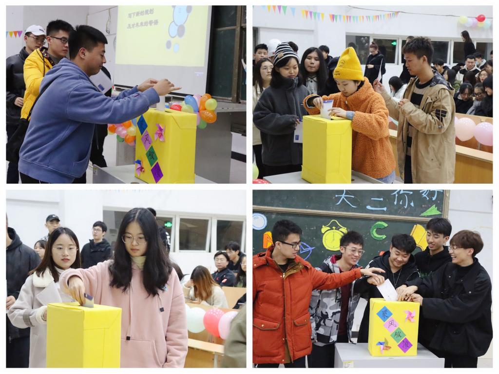 勿使初心染尘埃。大二是大学的高速成长期,有目标有规划会让各项素质、技能和能力随时间推移突飞猛进。该环节请大家在留言框内,写下对未来的寄语及新阶段想要达到的目标。信纸装入信封,大家依次上台,满怀希望的将其投入“乘风破浪”信箱。这封信将继续保留在辅导员处,同学们对自己所写所述进行动态管理,适时调整方向、及时总结完善。