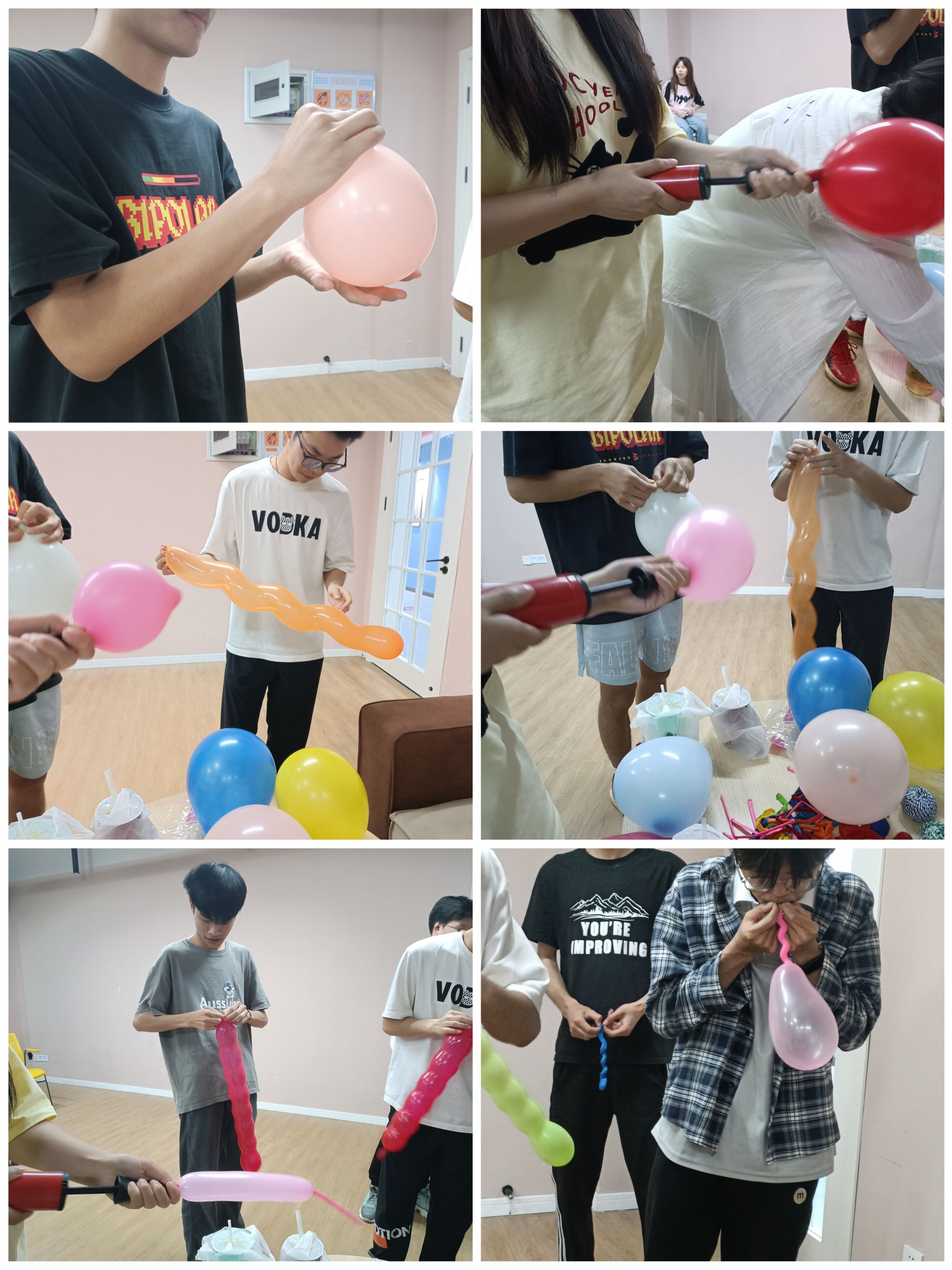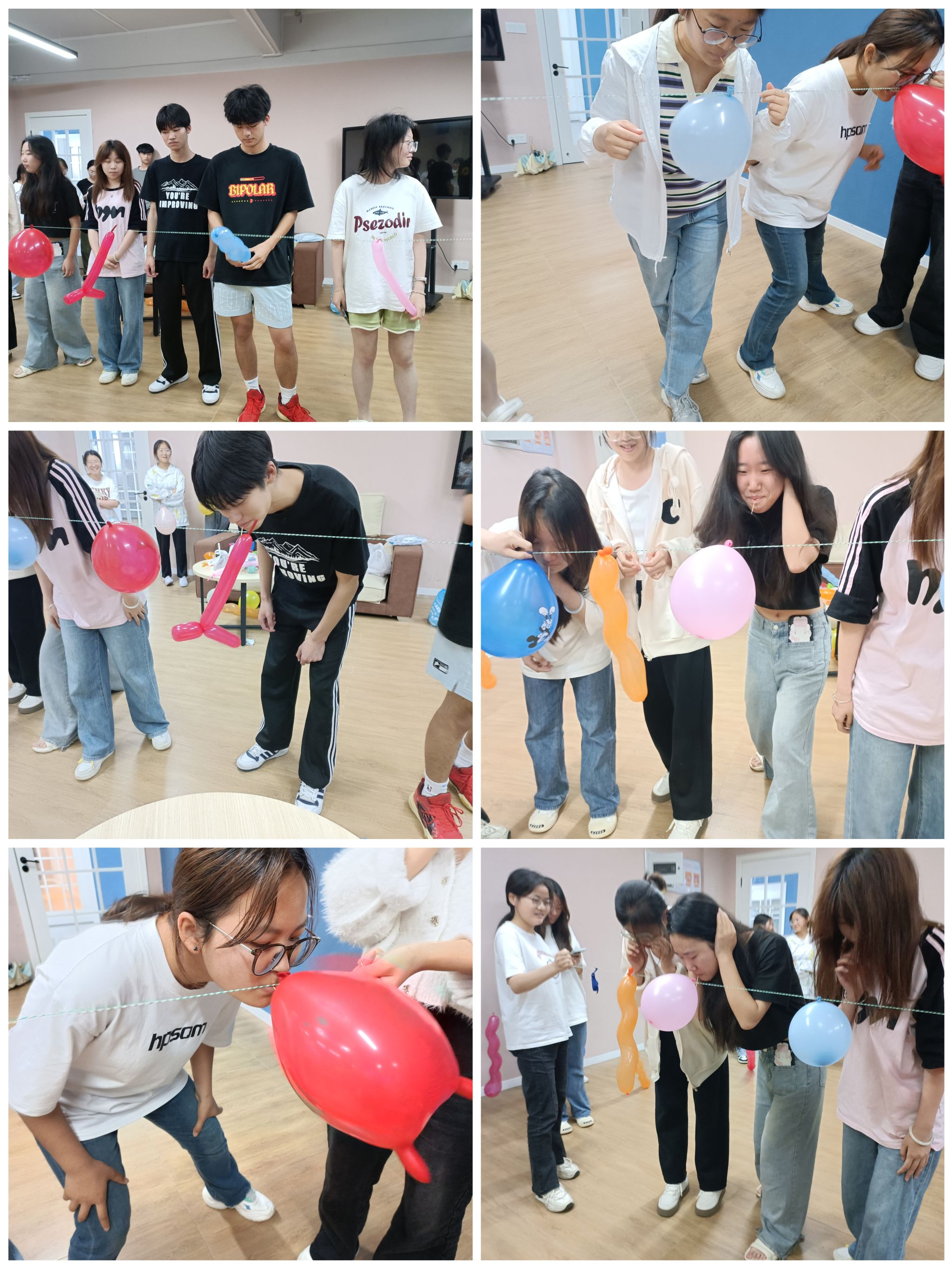 同学们齐心协力,亲手五彩斑斓的气球编织成一串串梦幻的彩链。随后,老师对同学们进行了分组以便与同学们开展后面的活动。在活动中,同学们巧妙地运用牙签,精准而敏捷地戳破每一个气球。欢声笑语此起彼伏,同学们在团结协作中互相扶持,共同进步。最终,那些熟练掌握技巧、能够迅速而精准地扎破气球的同学们脱颖而出,成为了我们的胜利者。而那些被扎破的气球,就如同我们心中的压力与束缚,在游戏中得到了释放,让同学们感到无比的轻松与愉悦。
