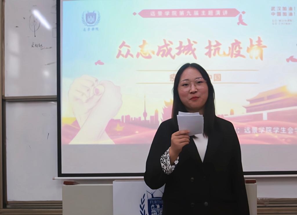 2020年11月12日中午,远景学院学习部在菩提书院阶梯教室开展了以“众志成城齐抗疫—疫情后的中国”主题演讲比赛活动。此次活动特别邀请了杨辉建老师、吴慈荷老师以及陈淑涵老师莅临现场,我们希望通过这次比赛,能让选手乃至2020级全体新生了解到,经历残酷疫情后的中国如何继续坚强不屈、顽强生长。
