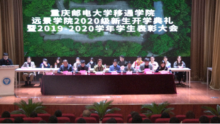 远景学院通过开展新生开学典礼,邀请家长共同参与,结合远景学院校园开放日开展相关活动,构建家校联动,和家长共话学生成长,用这样深具仪式感的开学典礼,让同学们树立起远景学子的主人翁意识。10月21日,远景学院2020级新生开学典礼暨2019-2020学年学生表彰大会在下里巴人剧场隆重举行。重庆邮电大学移通学院校长助理孙玺老师、刘枚老师,学生处副处长陈帅老师,书院部副部长穆春江老师,远景学院执行院长皮若兰老师以及远景学院全体教师、高年级学生代表、2020级全体同学和新生家长代表出席了本次大会,会议由远景学院学工副院长李军主持。会上通过院长祝福、新生纪念卡发放、代表与家长发言,表彰优秀等关节,既欢迎了新同学,也树立了榜样,表彰了先进。