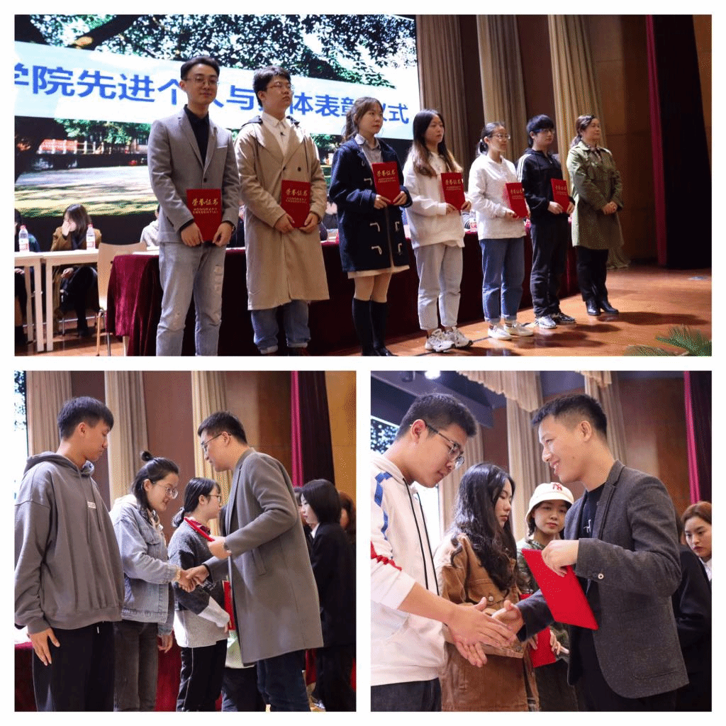 本次大会不仅是欢迎新同学的大会,同时也是表彰先进,树立榜样的盛会。大会中集中表彰了远景学院2019—2020学年的各类先进个人与优秀集体。学生处副处长陈帅老师、书院部副部长穆春江老师为远景学院获得学校各类先进个人与集体代表进行了颁奖。