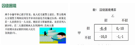 囚徒困境是指两个被捕的囚徒之间的一种特殊博弈。二人的理性思考都会得出相同的结论——选择招,因此各判8年,但对双方最好的是不招,各判一年。即均衡解和最优解相冲突。这是经典的囚徒困境。