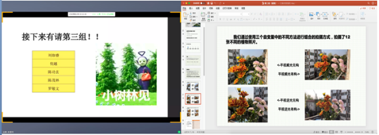 第三组拍摄植物,由罗敬文同学主讲,通过对植物进行拍摄,并对取得的样本进行分析,得到自变量与因变量之间的关系,以此建立数学模型,让更多人的掌握拍植物的方法,加以应用。他们组主要从构图、视角、光线三个因素构造线性回归模型,对拍摄照片进行评分。通过前期的照片拍摄、问卷打分、数据分析、Python软件生成线性回归方程并进行统计分析,并进行了植物类照片的模型检验。