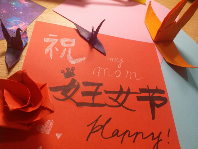 参与此次活动的不仅有“浪漫主义者”,更有一批“现实主义者”。相较于以上直白的表达方式,他们选择用行动代替他们发声。妇女节涵括对象不止于母亲,这是属于所有成年女性的节日,所以有一位同学为庆祝这个节日,亲手制作了一个可爱的蛋糕,并采用摄影的方式将意义非凡的此刻记录下来。