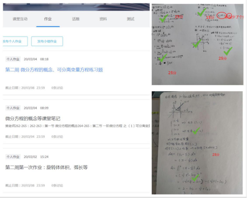 数学类课程线上教学的设计和开展,充分考虑到课程特点、教学目标和学生学习特点,以线上直播教学、学生任务驱动学习、互动讨论指导为主的混合式教学方式进行。尝试将教师讲解互动与国内平台的优秀课程视频资源相结合,指导学生养成问题思维习惯,进行知识重难点的深入学习。另外借助QQ群、钉钉群、课堂派等辅助平台组织学生进行考勤、梳理知识点、讨论、布置测试和答疑等教学活动。秉持“原老师+原时间+原内容”的教学原则,努力确保课程内容与教学进度无缝衔接,最大程度保障学生学习进度与效果。
