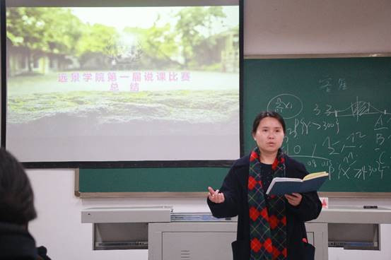经过愉快又激烈的讨论,皮院总结道:听完教师们的说课启发很大,感受颇深。她肯定了远景这支通识教育队伍的成长,教师们教学能力的提高,教学方法的丰富。她指出说课比赛的目的是让教师们充分具备教研教学改革的意识,同时加强学习通识知识。她向各教师提出不仅要修炼内功、埋头琢磨、对内探讨,更要总结可发表的经验积极对外呈现,走向更大舞台的期望。她强调这是一个知识分享与融合的时代,我们要时刻保持危机感,加速探索教学方法。望老师们继续努力,一路收获,勇敢前行。