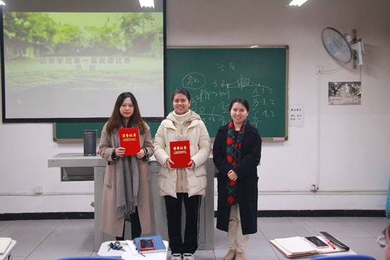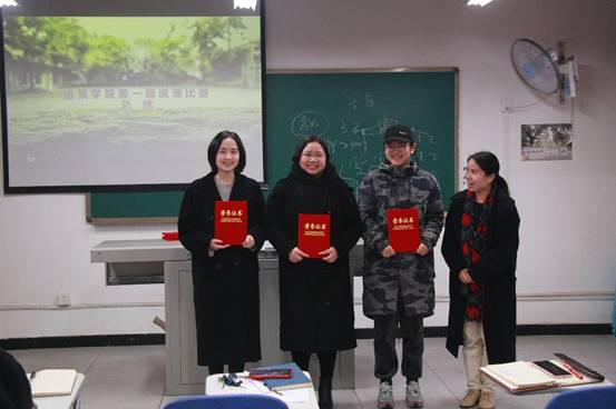 据悉,远景学院本届说课比赛共分五场进行,是我院教师基本功展示系列活动之一。老师们参与热情高,准备充分,从教材与学情分析、教学过程、教学反思等几个方面进行了现场说课,最终李欢老师获得一等奖,戴华老师、唐智盟老师获得二等奖,汤妮老师、吴慈荷老师、朱雪珂老师获得三等奖。