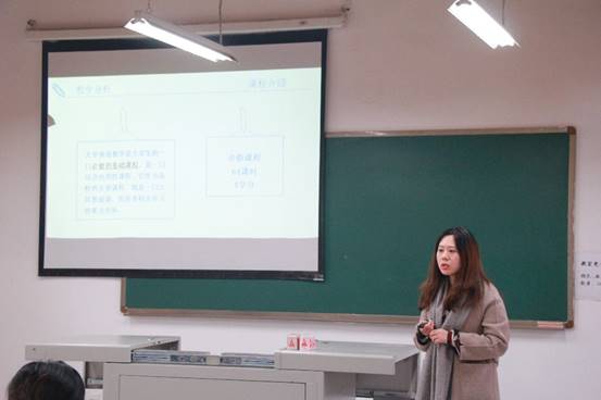 戴华老师以《大学英语》拉开比赛的帷幕,她分别从教学分析、教学设计、教学模式、教学过程、教学反思等全方位多角度详细具体地汇报了自己的教学工作,提出知识、能力与素养的三个教学目标。她特别注重线上教学模式的运用,参考学生学习金字塔,采用适用性较强的游戏化教学法,旨在提高学生课堂学习参与度。期间,她还向在座教师们强力推荐学习软件课堂派,其中加星、参与话题讨论、制作调查报告等一系列考核方法更是有效激发了学生们主动学习的兴趣。