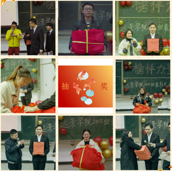 千门万户曈曈日,总把新桃换旧符。借着迎新春的脚步,此次大会还特意设定了“抽锦鲤”的环节,以示在新的一年里,能够万事顺利。而“锦鲤”所抽取到的礼包礼品来自2018级每一位同学,每个人送上自己的一份祝福组成了5个礼包,随着一个一个礼包名花有主,现场气氛也逐步达到高潮。