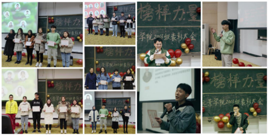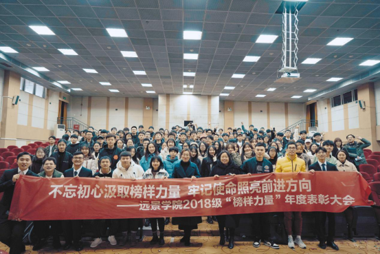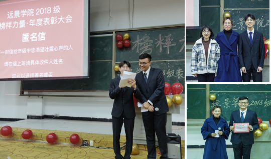 回首过往,在欢笑中收获,亦在泪水中成长。一年的时光洗礼,远景学院2018级也逐渐涌现出了一批敢于争先,勇于争优的优秀学子。他们积极进取,力求超越,他们携手奋进,不断创造着属于“远景人”的高光时刻。为鼓励并呼吁大家向优秀看齐,远景学院2018级全体师生于2019年12月23日16:00,在3303教室,举行了“榜样力量”远景学院2018级年度表彰大会暨主题年级会。同时,远景学院导师代表杨辉建老师、吴慈荷老师、汤妮老师以及杨滨宇老师应邀出席。