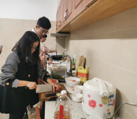 亲近学生生活,了解学生动态,一直都是远景学院领导和老师们的工作重心,基于此,为了更好的了解并且解决大一新生在日常生活中所面对的疑惑与难题,远景学院于2019年12月9日晚在远景楼502厨房开展了一月一度的院长共膳日,参加的有远景学院执行院长皮若兰,2016级辅导员翟雨辰,2019级辅导员谭志恒,2016级学生代表和2019级各支部的学生代表。