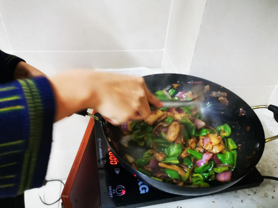 青椒与料酒的融合,使回锅肉色泽红亮、肥而不腻;辣椒与葱姜蒜的碰撞,使水煮鱼麻辣鲜香,鲜嫩肥美;还有清甜软糯的芒果糯米饭,用阵阵清香引诱着厨房里每一位成员的味蕾。每一道菜皆是色香味俱全,让人等不及大快朵颐。