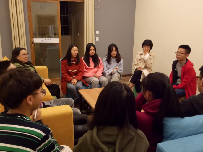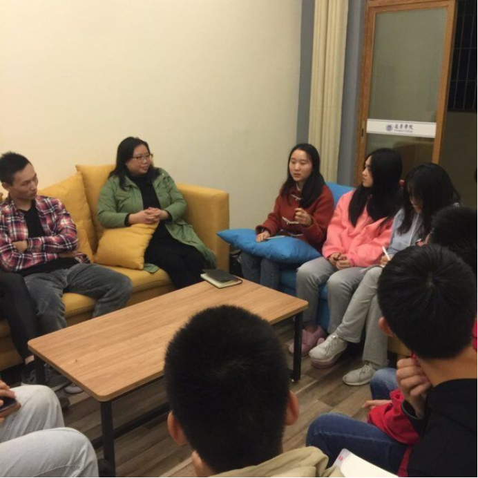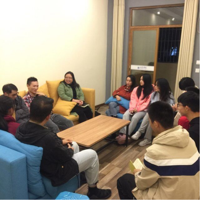 2019年11月6日晚上9:30,远景学院吴慈荷导师组2017、2019级的同学们齐聚在远景楼活动室106,在吴老师的主持下,举行了2017级读书分享会活动。这次读书会对19级大一同学们来说,可谓是一次值得学习的宝贵机会。