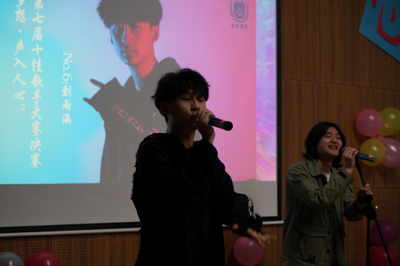比赛伊始,来自2019级的刘书华同学用一首周杰伦的《晴天》,做了很好的开场,他温柔的嗓音萦绕在观众的耳畔,场下好多人都情不自禁的跟着他一起哼唱,沉浸在他的音乐中,久久回味。接着上场的罗彬忱带来的一首《最炫民族风》点燃全场,推动着比赛向高潮发展。
