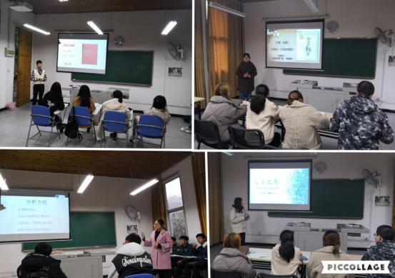 在课程陈述方面,当一名同学演讲PPT的同时,杨老师指定五名同学围绕演讲者而坐,通过这个环节锻炼学生的抗压能力,以及近距离与听众沟通交流的能力。同时四名学生在演讲者讲完后进行点评, 模拟面试场景。通过这样的方式让课堂陈述变得生动活泼,并且更大程度提升了学生的参与度。