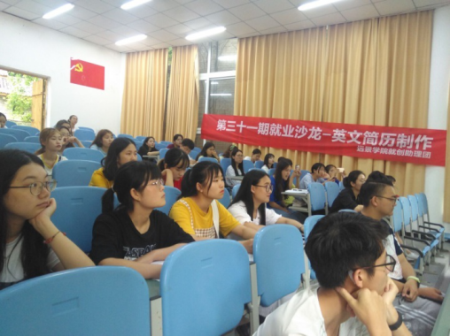 简历是求职过程中重要的一环,也是自我推销的工具,简历可以将我们打开求职的大门,而英文简历在制作过程中却与中文简历制作大有不同,为了让大家更好的打造自己的英文简历,提高同学们英文简历制作能力、避免一些英文简历制作雷区,从而在茫茫求职信中脱颖而出,获得一个好的工作机会。2019年6月19日16:00,远景学院在菩提书院阶梯教室开展了第三十一期就业沙龙之英文简历制作。