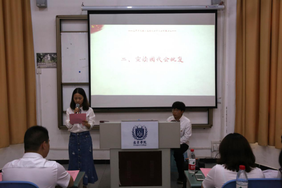 会上,远景学院学生副书记贾斌与学生会主席赵燕分别做为《共青团远景学院总支部委员会工作报告》和《学院远景学院学生委员会工作报告》。两份报告分别回顾和总结了远景学院近年来共青团、学生会工作的成绩和经验、问题和不足,明确提出了今后目标和努力方向,并号召学院学生习近平新时代中国特色社会主义思想和党的十九大精神的指导下,帮助学院学生树立精神支柱,树立正确的价值观,抓好团组织建设与团干部培育。明确学生会基本定位,完善学生会规章制度,增强学生干部的先锋模范作用和带头示范作用,提升学生会整体的凝聚力和感召力。