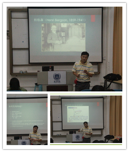 其次,邓老师谈到法国哲学家伯格森对技术哲学的思考。伯格森有对现代科学技术的批判,但柏格森对技术发展的态度总体上是乐观的,这种乐观的态度和精神是与其以“绵延”为核心的哲学思想分不开的。伯格森的时间观念与以往哲学的时间观念不同,以往有永恒的时间观念(如古希腊人柏拉图)、空间化时间(物理学),而伯格森的时间观念是“绵延”。他认为,人类生命的进化发展处在绵延的长流之中,是一种朝向着自由的创造过程,同时技术是人类生命创造性地进化的产物,因此它的存在是有益于人的自由的。邓老师谈到了伯格森哲学中的“绵延的时间”、“绵延的身体”、“绵延的生命”、“绵延的社会”等几个方面,阐述了其思想产生的背景,主要说明了在大机器生产的工业化时代,机器对人的束缚与压迫的状况,同时也指出在当时,机械论思想的流行在人们的精神领域产生了消极的作用。柏格森受唯意志主义与生命哲学等的影响,对其时代进行了深刻地反思,批判了影响社会发展。