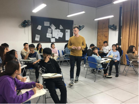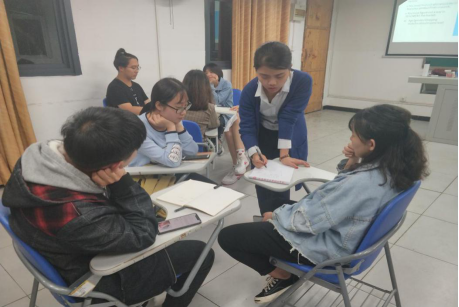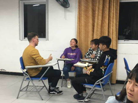 英语泛读课程面向大一学生授课。整堂课程分为三部分——老师介绍相关知识、小组讨论以及分享结果。本堂课,老师们围绕市场营销给学生逐一讲述了几个成功的营销案例,引导学生对市场营销案例进行相应的思考。如:“口红一哥”李佳琪的成功之路、我国“如涵”网红孵化基地、知名品牌“Nike”“Adidas”的等营销方式。老师们选取的案例十分贴近生活、富有时代气息,并且多能在学生中引起热烈讨论。通过简单的几个案例,能够为学生们进行表层剖析,尽可能地帮助学生更好地理解市场营销,便于进行课堂第二部分的小组讨论环节。学生们都积极反映道:以英文的方式来讲中国的故事能给他们带来许多不一样的感触。第二环节学生可以采取中英语结合的方式来进行小组讨论,并最终以英语的形式做课堂陈述。小组讨论环节中,唐智盟老师和Peter外教会帮助学生解决一些专业性的问题,回答学生提出的一些问题,帮助学生更好地表达。第三环节——小组轮流发言,各小组可以就其他小组发表的言论提出一些疑问,并给出自己的想法。各种信息的交流使学生看到真实世界,不同观点的碰撞使得课堂气氛格外的活跃。