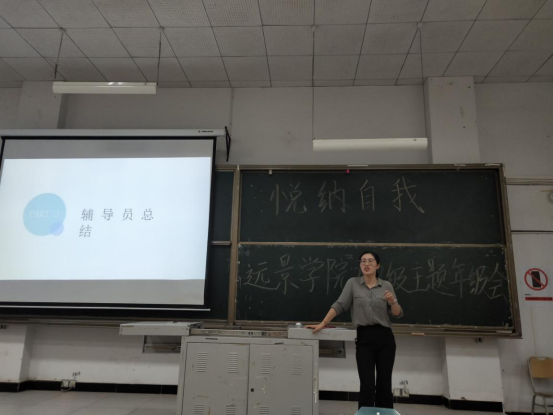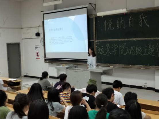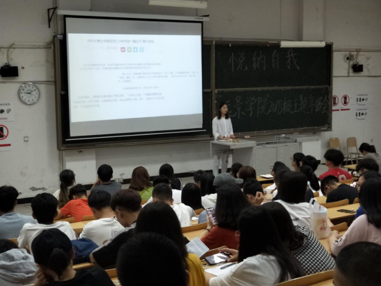 以刚刚过去的全国大学生心理健康日为契机,鼓励同学们不断了解完善自己,接纳自己,同时改善不足之处。远景学院2018级于5月26日21;00在3102教室围绕了解自我,接纳自我召开了本次“悦纳自我,放飞心灵”主题年级会。班导师周松岑在年级会开始阶段,引入全国大学生心理健康日的核心内容,即:“发现自我,关爱自我,悦纳自我”,以此说明了召开此次年级会的重要意义。同时,她提醒同学们要学会合理调整自身心理状况,时刻保持一颗乐观向上的拼搏之心。