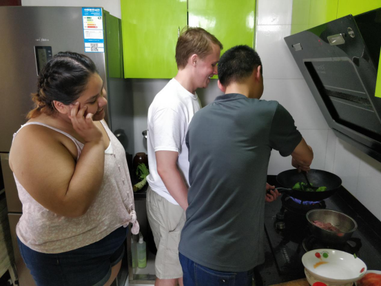 四组NIU的交流生们将分别在中国家庭中体验,他们的行程安排也十分丰富有趣。其中有一组家庭带他们欣赏合川山水风光,介绍合川的地理环境和风土人情,让交流生们对三江之城的历史产生了浓厚的兴趣。紧接着,家庭邀请交流生们到家中做客,品尝他们精心准备的鱼香肉丝、糖醋排骨、大河鱼等中国特色美食,让留学生在享受中国美食的同时,感受中国饮食文化的深厚底蕴。吃完饭,志愿家庭的小朋友还主动给大家表演了拉丁舞和恰恰,在这样欢快的氛围中,交流渐入佳境。