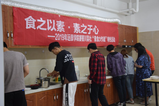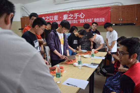 盛夏五月来临,为了让同学们在刺激有趣的活动过程中锻炼自己、展示自我,于2019年5月19日,饕餮川菜社怀着满满的热情在C6厨房举办了一场以“食之以素·素之于心”为主题的素食大作战活动。此次活动主要通过团队形式,设置刀工、凉菜、营养粥等PK环节,提升同学们对厨艺的兴趣,树立大家健康饮食的理念。此外,本次活动非常有幸邀请到了远景学院的吴慈荷老师、杨辉建老师以及杨志学长作为评委并参与其中,为活动增添色彩。