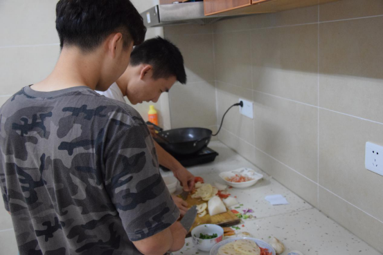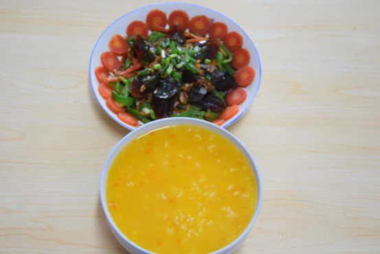 凉菜配营养粥就像“豆浆配油条”。两者搭配起来,口味清爽,能解暑气,而且十分营养,可谓是重庆闷热夏天的上上之选。该环节制作营养粥与凉菜同时进行,各组自行从食材包中选取辅料搭配大米,熬制出各具特色的营养粥,尽可能完美搭配凉菜。只见,红枣、青菜、南瓜等都在同学们的考量下得到了合理利用,但也有少许对食材搭配和熬粥技巧不太熟悉的同学,导致最后的营养粥略显“黑暗”,水和米的比例失误,使粥过于稠;辅料的混杂,使得口感欠缺、营养失调等。可见,同学们需要对做饭做菜多些了解,才能做的好吃,吃得健康。不过厨艺的进步是不断去实践才能提升的,相信同学们在活动中也收获了很多宝贵的经验和心得。