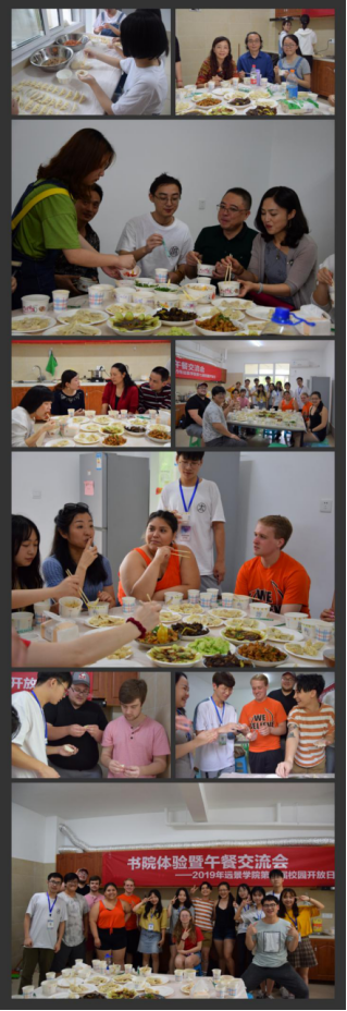 学生除了在课堂上有别于传统课堂,那作为荣誉学院的远景学院在宿舍方面有什么不同呢?本届校园开放日,学院邀请来宾们走访了远景楼,实地感受书院的寝室、洗衣房、自习室、讨论室、接待室、图书室、茶话室......丰富的功能场地、良好的硬件条件得到了来宾的一致认可。午餐时间,学院邀请所有来宾一同移步宿舍厨房,干净整洁的厨房设施也得到了来宾的广泛赞誉。“没想到厨房里配的设备这么齐全,除电磁炉、锅碗瓢盆一应俱全外,还有抽油烟机和冰箱,甚至连桌布等都考虑到了”一位来宾感慨到。在志愿者的引领下,来宾们纷纷洗手后加入到包饺子的大军中。当听到场地布置、物资筹备、食材选购、食物制作都是学生们自己动手完成的,仅调料一项就有十几种之多时,大家纷纷竖起大拇指,表示对大家的认可。来宾与师生们一起包饺子、煮饺子、聊近况、话家常,其乐融融,让来宾感受到了远景学院家庭般的温暖。“饺子口味很不错!”、“凉菜色香味俱佳!太丰盛了!”……家长们的夸赞不断,一声声的“你们真棒!”、“谢谢!”回荡在厨房里,每个人都喜笑颜开,像极了一个大家庭,相约的一次大团圆。