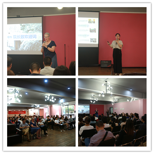 下午2:30,优秀学生子成长分享会在爱莲书院音乐咖啡厅准时举行。一段学院宣传视频让来宾们更加深入地了解远景学院独特的教育机制和培育模式。院长关玉琳用流利的中文对来宾的到来表示欢迎,她祝愿大家在远景学院度过愉快的一天。执行院长皮若兰对学院建设、师资力量、国际资源、培养模式等情况向来宾做了详细的介绍,清晰的办学理念、详实的数据、学院的发展方向等让来宾更加了解了学院。